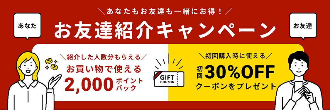 ・紹介された方(被紹介者): 初回購入で「30%オフ クーポン」プレゼント