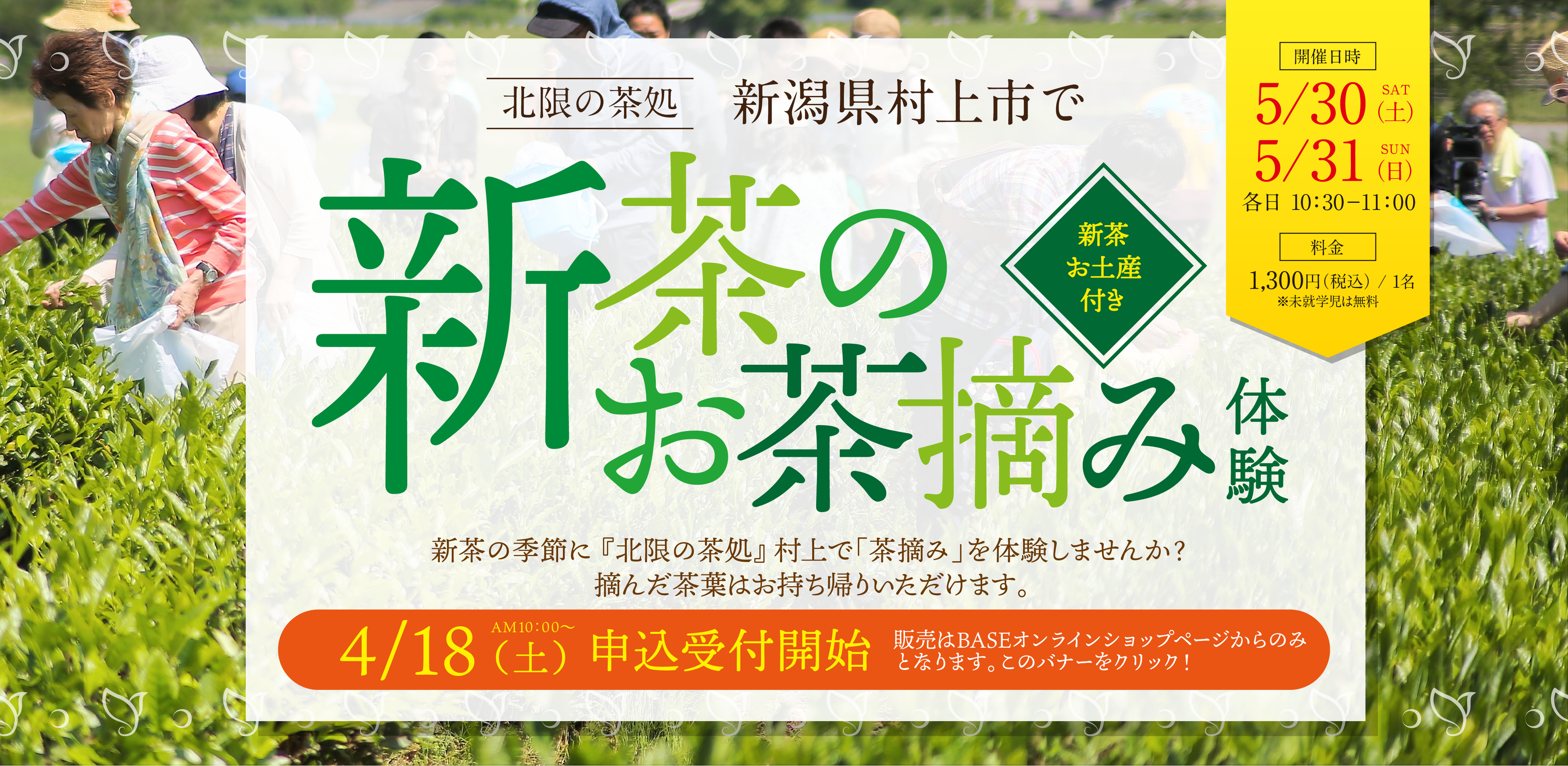 一般社団法人村上市観光協会は、2026年5月30日(土)・31日(日)に「新茶のお茶摘み体験」を新潟県村上市にて開催します。
