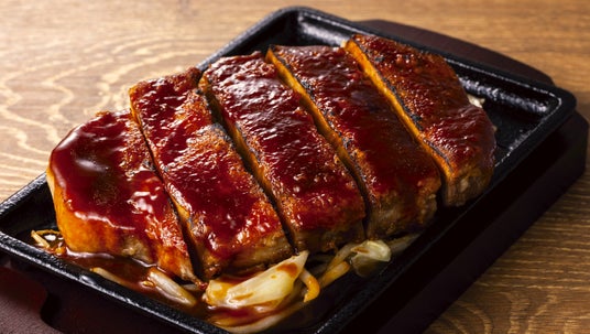 定食でも人気のボリューム満点トンテキ240g。お酒との相性も非常によく、アラカルトでのご注文が多い商品です。