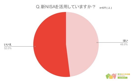 今回、株式会社AZWAY(https://azway.co.jp/)が運営する、幸せおうち計画(https://azway.co.jp/media/)は、10代から60代以上までの577人を対象に「新NISAを活用しているか」についてアンケート調査を実施しました。