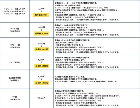 ・ 花火撮影特等席:8,000円→超早割:5,000円 ※5月15日まで)