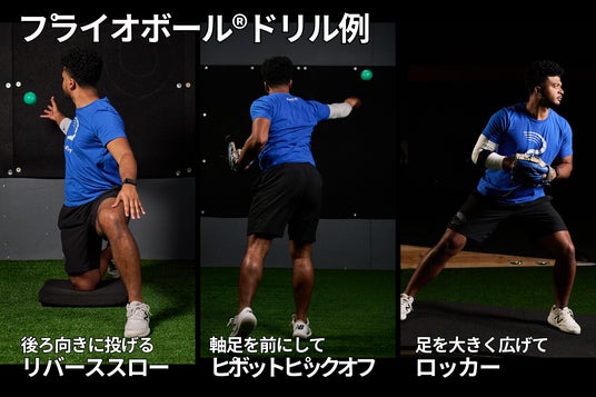 プライオボール(R)とは、世界最先端の科学的野球トレーニングラボ Driveline Baseball Enterprise LLC(本社:米国ワシントン州、以下 Driveline Baseball)が、投手・野手の投球メカニクス改善を目的に開発した、重さの異なるカラフルなボールとドリル体系です。壁やネットに向かって、後ろ向きや、軸足を前に出して投げるなどの「変わった投げ方」で、重さの異なるボールを数球ずつ投げていくことで、「球速アップ」と「ケガ予防」という一見相反する目的を両立する「理想の投球メカニクス」が身につき、これまで難しかったフォーム改善が無理なく進められます。