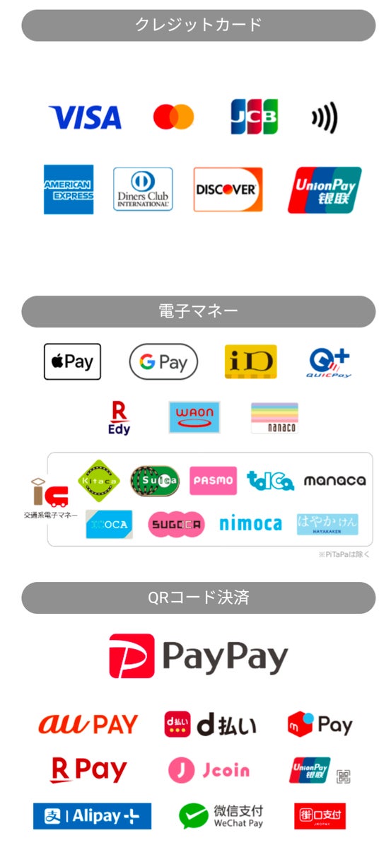 (QR決済に関してはクラウドペイを採用しておりインバウンドの決済方法にも対応)