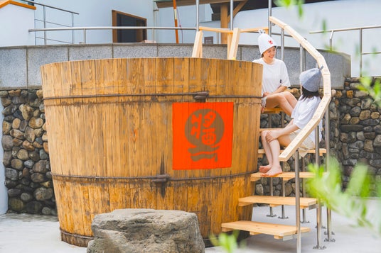 - 三豊鶴 日本酒樽 水風呂(酒蔵で利用されていた日本酒樽をリノベーションした水風呂)
