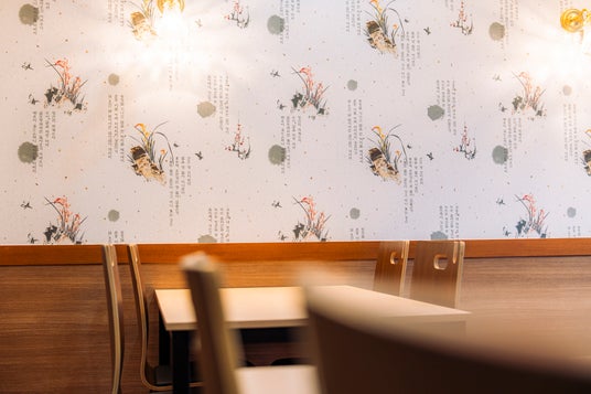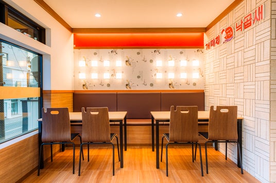 店舗は京都駅北側・京都らしい町家が軒を連ねる中に大正~昭和初期のレトロモダン建築が点在する七条通に位置しています。内装は釜山ケミチプの店内設計担当者によるデザインを元に壁や床、照明も本場の雰囲気を忠実に再現。特にハングル文字をあしらったアクセント壁は韓国から壁紙を輸入し使用しています。