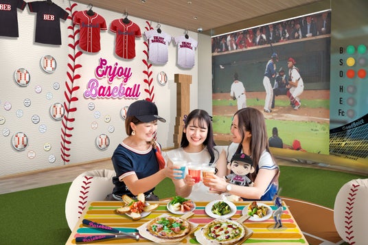 「居酒屋以上 旅未満」の旅を提供する「星野リゾート BEB5沖縄瀬良垣(ベブ)」では、2025年2月1日~28日の期間、プロ野球キャンプ応援後もホテルで野球推し活ができる「キャンプ推し活スタジアム」が誕生します。毎年2月にはプロ野球キャンプが開催され、多くの野球ファンで賑わう沖縄。24時間好きなように利用できる「TAMARIBA(タマリバ)」に、野球場をイメージした「キャンプ推し活スタジアム」が誕生します!キャンプで見た推しのチームや選手についてとことん語り尽くすのはもちろんのこと、順位予想をしたり、応援グッズを作成したり、推し活ボルテージは最高潮に。キャンプに行って推し活するだけでなく、ホテルでも心置きなく野球推し活に浸ることができます。