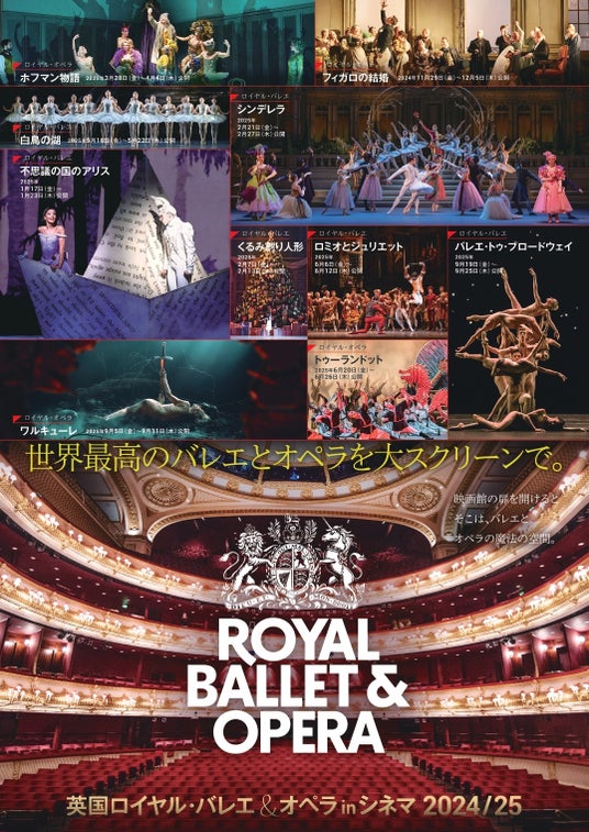 ロイヤル・オペラ・ハウスで繰り広げられる、世界最高峰の英国ロイヤル・バレエの舞台が映画館で現地さながらに楽しめる「英国ロイヤル・オペラ・バレエ&オペラ in シネマ」。2024/25シーズンは、ロイヤル・オペラ・ハウスが「ロイヤル・バレエ&オペラ」と改称したことに伴い、タイトルを新たに『英国ロイヤル・バレエ&オペラ in シネマ 2024/25』として、全10作品<バレエ6作品/オペラ4作品>を各1週間限定にて全国公開することが決定。ライブでの観劇の魅力とは一味違う、映画館の大スクリーンと迫力ある音響で、日本にいながらにして最高峰のオペラとバレエの公演を堪能できる、至極の体験をお届けしています。