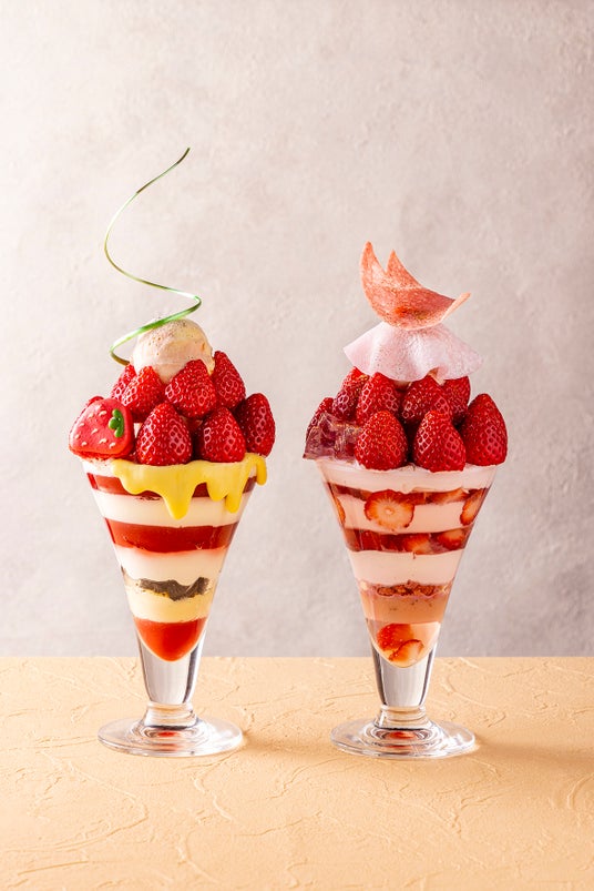 3月1日(土)からは、桜といちごをテーマに春の装いで仕立てた、華やかなパフェ2種をご提供いたします。和の趣を感じる「さくらいちごパフェ」と、濃厚な味わいが魅力の「ストロベリーチーズパフェ」。それぞれに異なる味わいのハーモニーと、五感を刺激する緻密に計算されたクリエイティビティに魅了される至福の時間をご堪能ください。