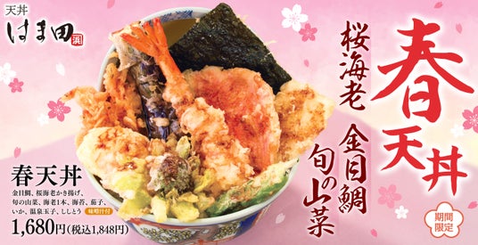 アークランドサービスホールディングス株式会社の子会社、とんかつ専門店「かつや」を展開している株式会社かつや(本社:東京都千代田区/代表:大内 勇一)は、2025年3月11日(火)より国内「天丼はま田」3店舗にて、期間限定メニュー「春天丼」を販売開始いたします。