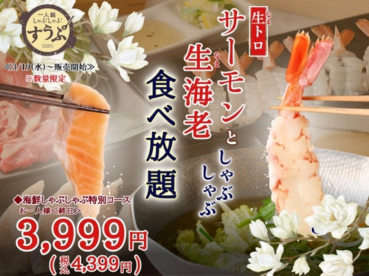 この度、『生トロサーモン・生海老』の海鮮が堪能できる海鮮しゃぶしゃぶ特別コースが、数量限定にて新登場!