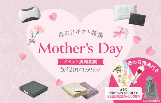 2.ムアツまくら限定 無料ラッピング対象のムアツまくらをご注文いただき、母の日特典ご希望のお客様に1個につき1回、無料でラッピングさせていただきます。メッセージカードとミニカーネーション(造花)もおつけいたします。