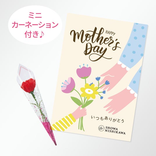 1.メッセージカード&ミニカーネーション(造花)プレゼントご希望の方にメッセージカード&ミニカーネーション(造花)プレゼントを同梱いたします。