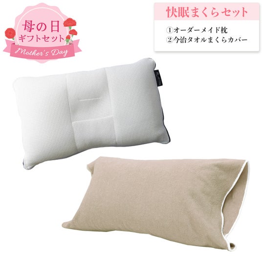 【母の日ギフト】快眠まくらセット(オーダーメイド枕+今治タオルまくらカバー)自宅で高さ調整ができるオーダーメイド枕に、今治タオルまくらカバーがついた母の日限定セットです。