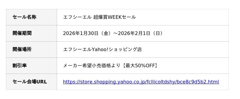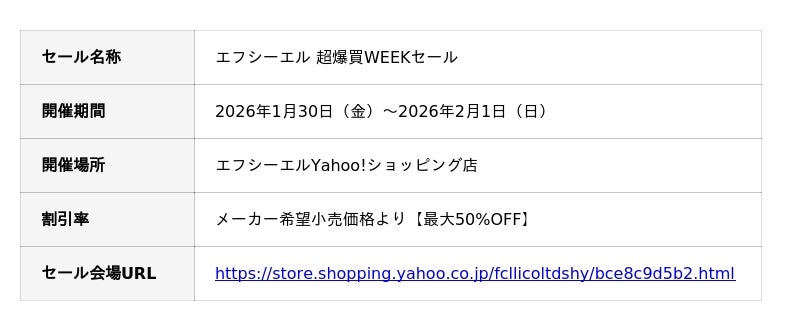 車・バイク用カスタムパーツ専門店エフシーエル(fcl.)を展開する株式会社WiNEEDS HOLDINGS(所在地:広島市南区、代表取締役社長:尾田 雅史)は、2026年1月30日(金)よりYahoo!ショッピング店にて開催される「爆買WEEK」に参画し、悪天候時の安全運転をサポートする「カラーチェンジLEDシリーズ」を含むLEDやHID商品を最大50%OFFで提供する特別キャンペーンを開始します。