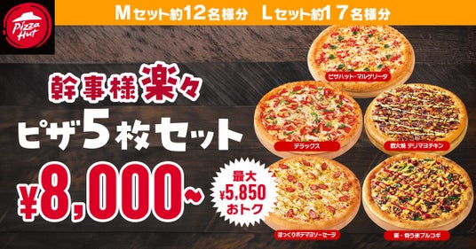 今回の「幹事様楽々セット」には、ピザハットの人気商品を組み合わせた、最大5,850円OFFとなる2種類のセットをご用意しております。