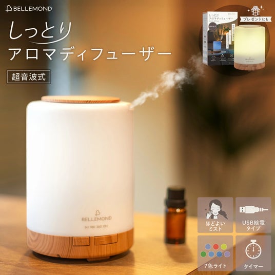 超音波式アロマディフューザー超音波式で卓上に最適。