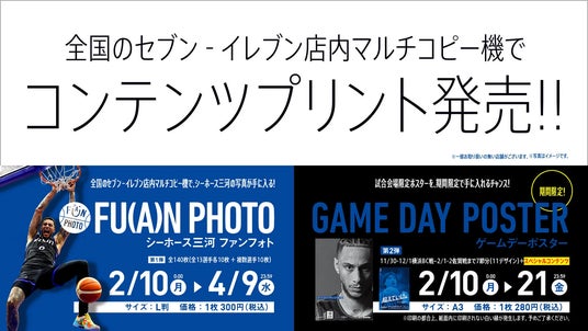 本日より、全国のセブン‐イレブン店内マルチコピー機でシーホース三河のコンテンツを発売いたします。