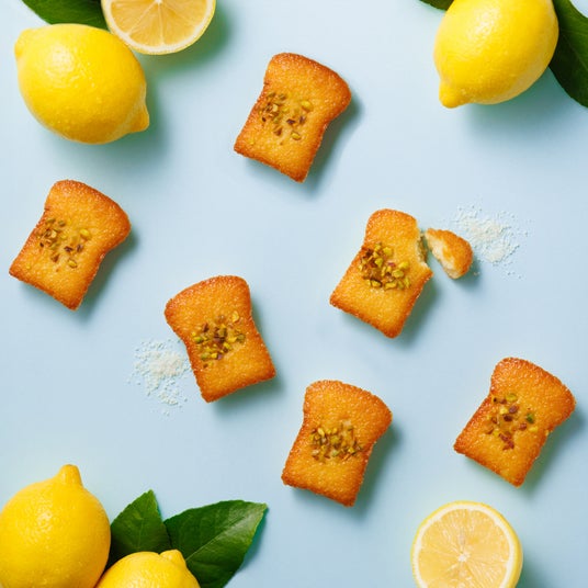 <期間限定> フレンチトーストフィナンシェ ソルト&レモン 「ゲランドの塩」と「レモン果汁、レモンペースト、レモンの糖漬け果皮」を使用し、甘さの中にほんのりとした塩味が効いた、味わいに深みを与えた一品。ひと口味わうごとにレモンの香りが広がります。トッピングのピスタチオの食感がアクセントになった、見た目も可愛いパン型フィナンシェです。 6個入:1,188円(税込)