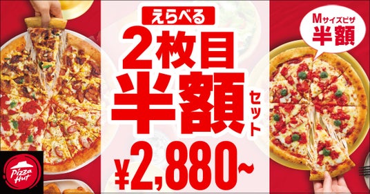 物価高騰が続く昨今、ピザハットの「お客様の家計を少しでも応援したい!」という想いから、「えらべる2枚目半額セット」を期間限定で発売いたします!