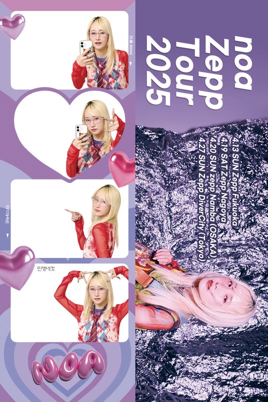 株式会社DONGRAMY PROJECT(本社:福岡県北九州市)は韓国の若いMZ世代に旋風的な人気を得ているセルフスタジオ「人生4カット」を運営しています。TikTokで総再生回数19億回を超え、今注目すべきシンガーソングライター「乃紫(のあ)」と「人生4カット」のコラボフレームが期間限定で登場します。 本コラボフレームは『乃紫 ZEPP TOUR 2025』と絡めた展開となり、会場に合わせたフレーム、人生4カットでしか見ることのできない限定カットなどが発売されます。ライブに参加される方はもちろん、会場での参加が叶わなかった方も存分に楽しめる企画となります。ファン待望となる本フレームは2025年3月15日(土)より発売開始。