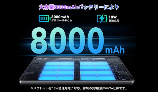 WPad7は、8000mAhの大容量バッテリー を搭載し、長時間の動画視聴やゲームプレイでも安心して使用可能。外出先でも充電の心配をせずに、一日中快適に活用できます。