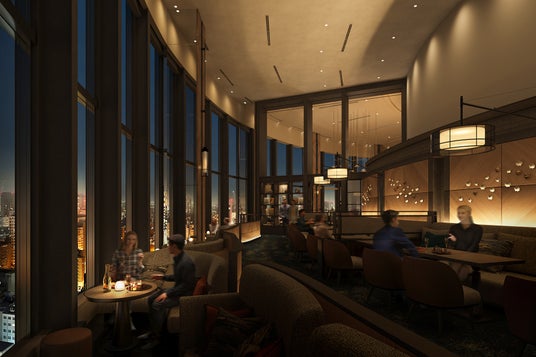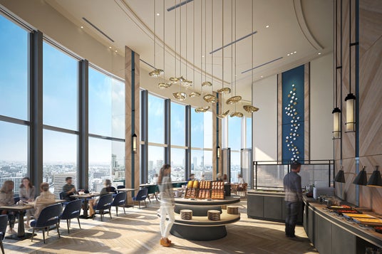 また、最上階28階に新設するクラブラウンジでは、クラブフロア宿泊者専用のインクルーシブサービスとして、ドリンク、フードを提供するほか、朝食会場としても営業いたします。フードコーナーを囲む「ダイニングエリア」と、より落ち着いた雰囲気の「ラウンジエリア」のふたつの顔を持ち、さまざまな時間帯やシーンでお寛ぎいただけるスペースが、ホテルステイをより豊かなものに導きます。