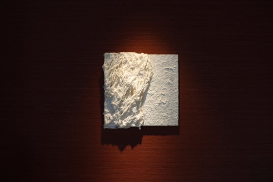 客室アートワーク夕暮れの茜空をイメージしたアクセントカラーの壁面には、雪や雲をモチーフに、蝦夷和紙を用いたアートワークを配置することで 自然の温もりと北海道らしさを演出。