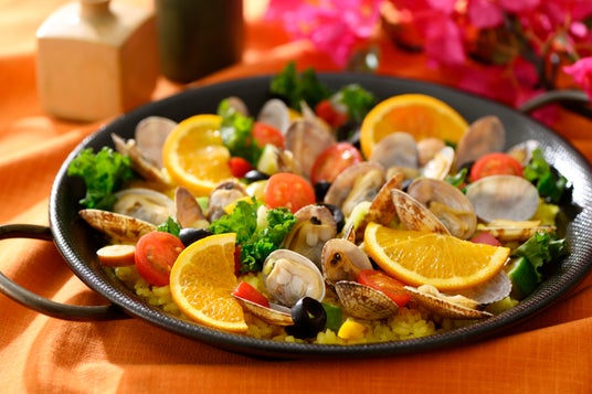 バレンシア風パエリアバレンシア地方発祥の米料理の『パエリア』。野菜や肉の旨味や魚介の出汁がしみ込んだ色鮮やかな一品。オレンジを絞ってさっぱりと味わうのもおすすめです。