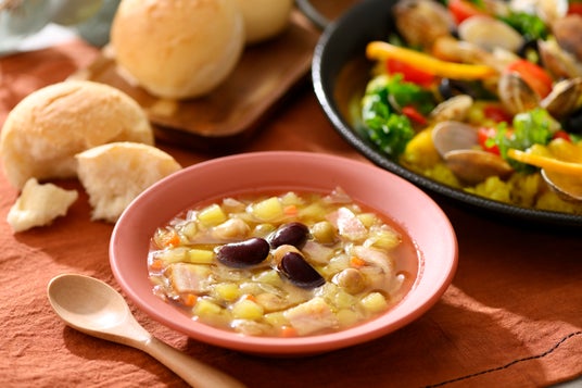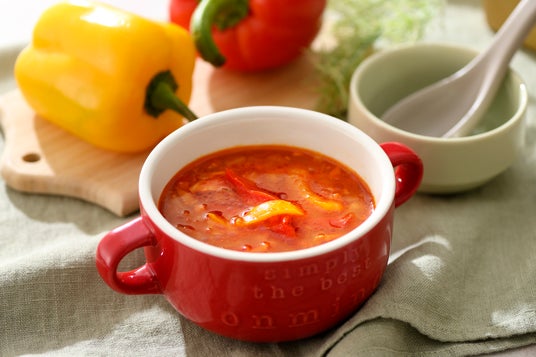アヒージョ風トマトスープスペイン料理のアヒージョの風味を取り入れた、コク深いトマトベースのスープです。オリーブオイルとにんにくの香りが食欲をそそり、トマトの酸味と甘みが絶妙に調和しています。