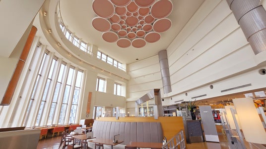 JR札幌駅直結、大丸百貨店の最上階にある店内は、2層吹き抜けのダイナミックな空間。