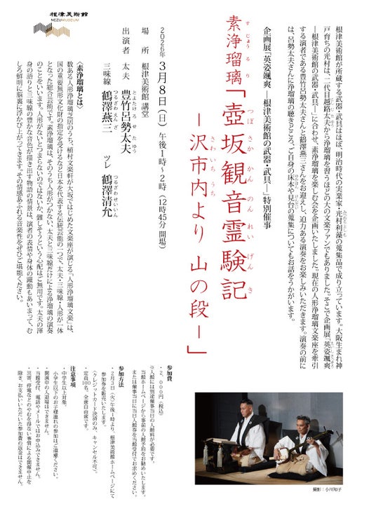 特別催事「素浄瑠璃の会 壺坂観音霊験記より」(有料)