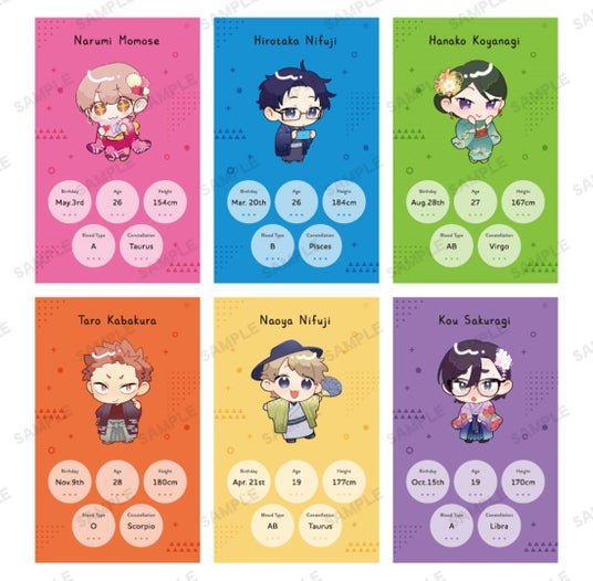 ちびキャラver. B8硬質ケース 税込660円桃瀬成海、二藤宏嵩、小柳花子、樺倉太郎、二藤尚哉、桜城光の描きおろしちびキャライラストをB8サイズのケースに仕上げました。
