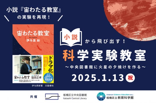 第70回読書感想文全国コンクー ル課題図書となり、ドラマ化もされている小説『宙わたる教室』(伊与原新著 文藝春秋)をテーマにした中央図書館・教育科学館の合同イベントを開催します。小説に出てくる科学実験を再現し、図書館のホールに「火星の夕焼け」をつくりだします。