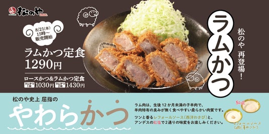 株式会社松屋フーズ(本社:東京都武蔵野市、代表取締役社長:瓦葺 一利)では、とんかつ専門店の「松のや」におきまして、2024年8月21日(水)午後3時より、「ラムかつ」を発売いたします。