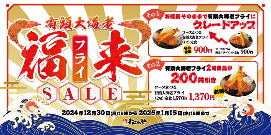 株式会社松屋フーズ(本社:東京都武蔵野市、代表取締役社長:瓦葺 一利)では、とんかつ専門店の「松のや」におきまして、2024年12月30日(月)午後3時より、「有頭大海老フライセール」を開催いたします。
