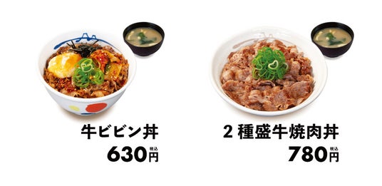 【松屋】牛の旨味が光る丼 「牛ビビン丼」「2種盛牛焼肉丼」 新発売