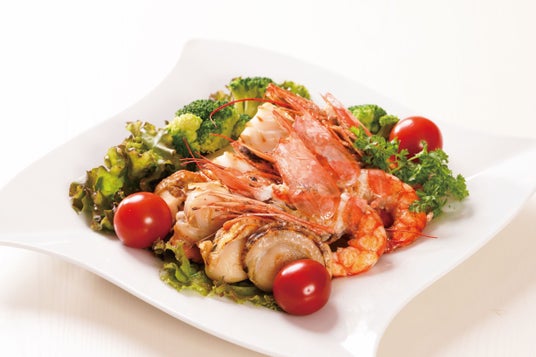 目の前で焼き上げる海鮮鉄板焼き