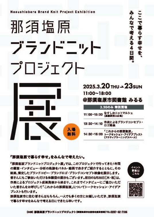 【栃木県那須塩原市】3/20(木)~3/23(日)「那須塩原で暮らす幸せ」をみんなで考えたい「那須塩原ブランドニットプロジェクト展」開催