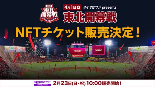 株式会社楽天野球団(本社:宮城県仙台市宮城野区、代表取締役社長:森井 誠之)は、4月1日(火)埼玉西武ライオンズ戦の「タイヤはフジpresents 東北開幕戦」において、一部チケットを『NFTチケット』として販売することとなりましたので、お知らせいたします。