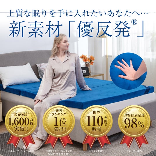 4.寝具ブランドMLILY(エムリリー)の「優反発シリーズ」エムリリーを代表するマットレス「優反発シリーズ」も、楽天スーパーSALEに参加いたします。エムリリー独自のウレタン素材「優反発(R)︎フォーム」は、低反発と高反発の特徴を併せ持ち、独自の優しい弾力性であらゆる体型の方を理想的な寝姿勢へとサポートします。また、寝返りも楽にでき、肩や腰への負担を和らげます。