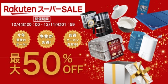 【楽天スーパーSALE最大50%OFF】この冬、最大級のセール!人気の秋冬寝具やこの冬を快適に過ごす季節家電・グッズ、あったかルームウェアなどがお得に!さらにお得に買えるクーポンも!