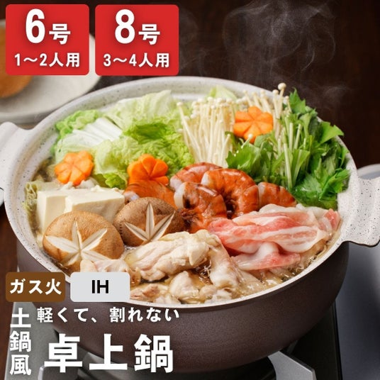 5.軽くて、割れない「土鍋風卓上鍋」アルミ製なので、従来の土鍋のように割れる心配もありません。誤って落としても壊れにくいので、小さな子どもやペットがいる家庭でも安心して使えます。