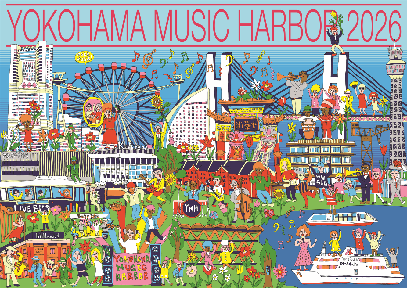 Designed by SwimmyDesignLab ぴあ株式会社がプロデュースするイベント『YOKOHAMA MUSIC HARBOR 2026』(以下、YMH2026)が、2026/4/4(sat)~4/5(sun)の2日間にわたって開催されます! 当イベントは、横浜都心臨海部をさらに活気あふれるエリアにするべく、 「音楽であふれ、音楽でつながる、世界一魅力あふれるミュージックハーバーを目指して」を