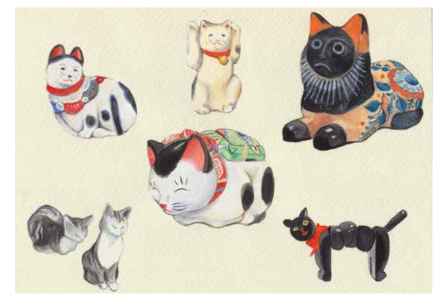大佛次郎記念館所蔵の猫コレクションが愛らしく描かれています。現在展示中の所蔵品もあるので、ぜひ本物と見比べてみて。 【大佛次郎記念館の風景印で猫の日に手紙を送ろう!】