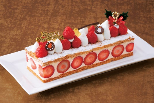 いちごがぎっしりと入った贅沢なミルフィーユには、オレンジリキュールで香りづけしたオリジナルクリームとカスタードクリームを合わせたクリームを使用。サクサクのパイ生地と、いちごとの相性が抜群の人気商品です。