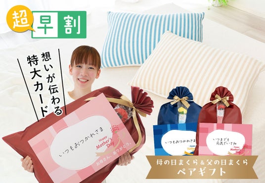 【母の日・父の日ペアギフト 超早割】母の日ギフト・父の日ギフトが早めの準備でお得に!「母の日まくら・父の日まくら ペアセット」が10%OFFで購入できる「超早割プラン」が 3月4日(火)より受付開始!