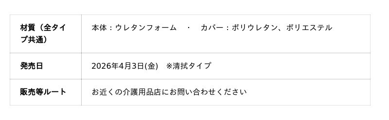 タカノ株式会社(本社:長野県上伊那郡宮田村、代表取締役社長:鷹野 雅央、以下 タカノ)は、ウレタン積層構造の車いす用クッション「タカノクッションS」清拭タイプを2026年4月3日(金)より発売いたします。
