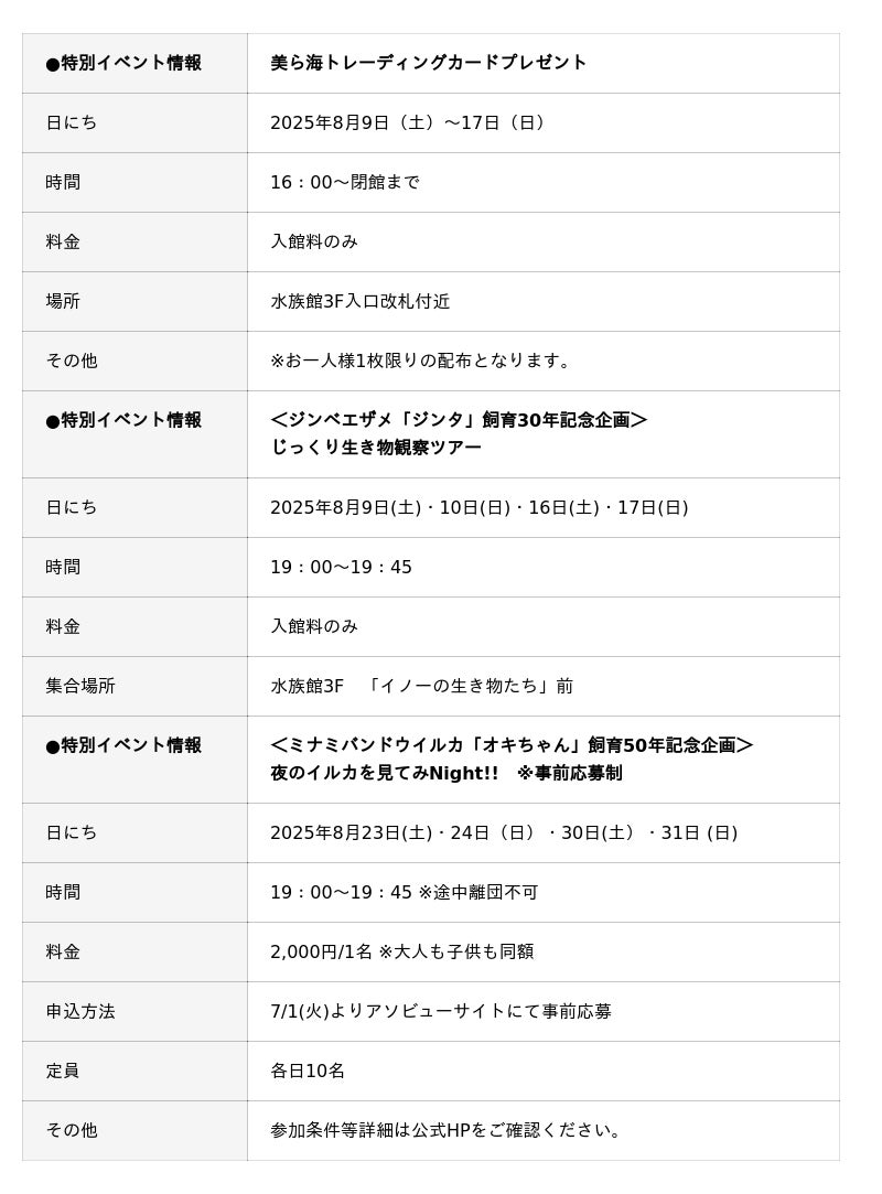 ※水族館窓口では販売しておりません。詳しくは水族館公式HPをご確認ください。 インフォテキストが入ります