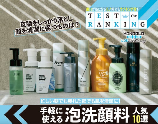 「LDK the Beauty Men」(『MONOQLO』×『LDK the Beauty』合同企画)では、最初から泡の状態で出てくるので、手軽に使いやすいうえにしっかり皮脂を落とす理想の逸品を探すべく、人気の泡洗顔料10製品を徹底テスト!数々のコスメをテストしまくってきた『LDK the Beauty』と『MONOQLO』が選んだ優秀アイテムで、男の魅力を磨きましょう!