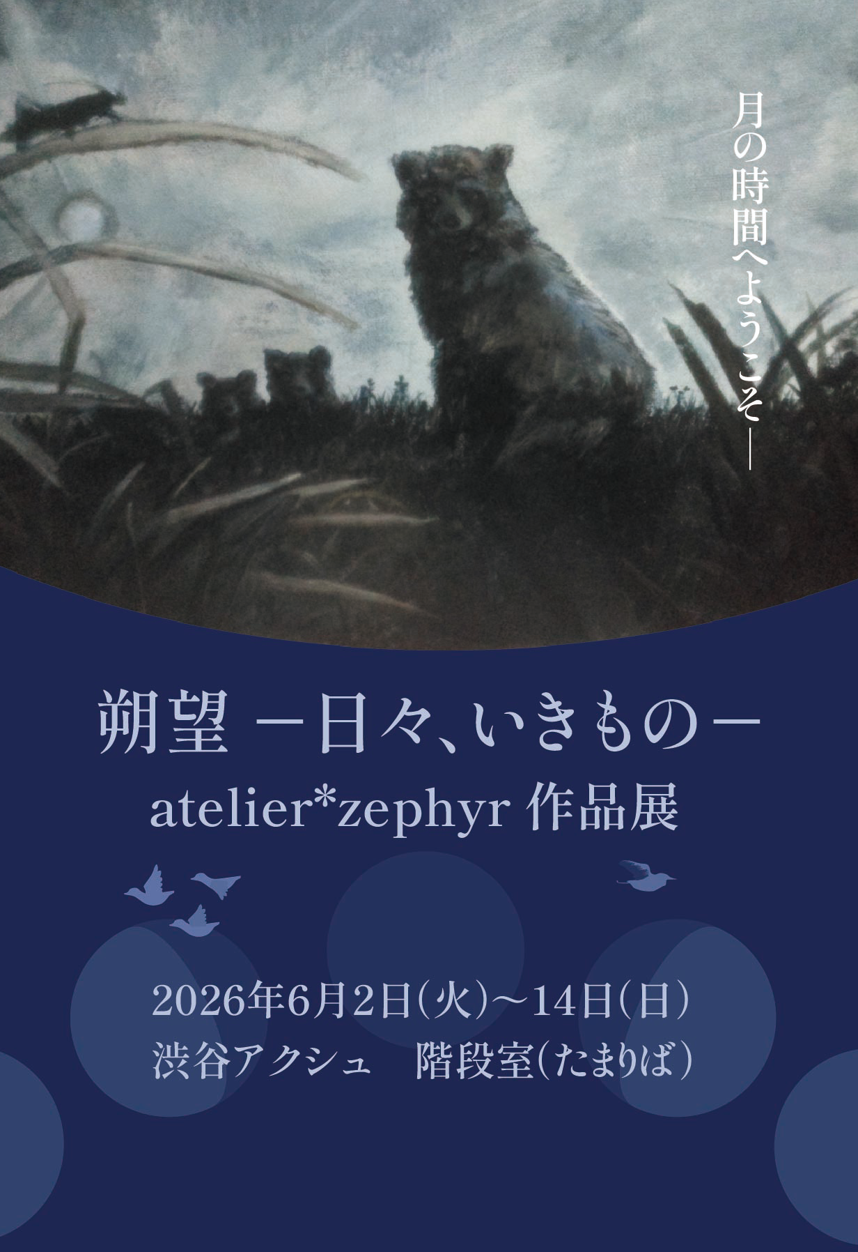 株式会社シアターワークショップは、運営する渋谷アクシュ3階のスペース「階段室(たまりば)」にて、画家・イラストレーター atelier*zephyr(アトリエ・ゼファー)氏による作品展『朔望 ―日々、いきもの―』を2026年6月2日(火)から14日(日)まで開催いたします。